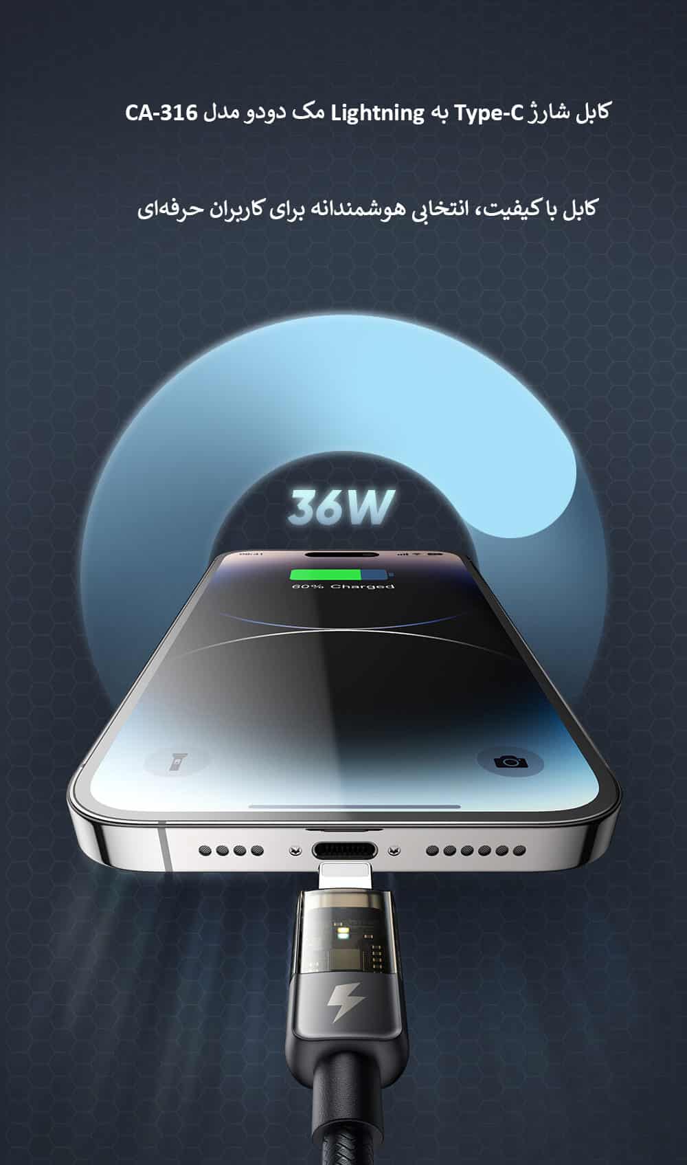 کابل شارژ3 آمپر Lightning به Type-C مک دودو مدل CA-316