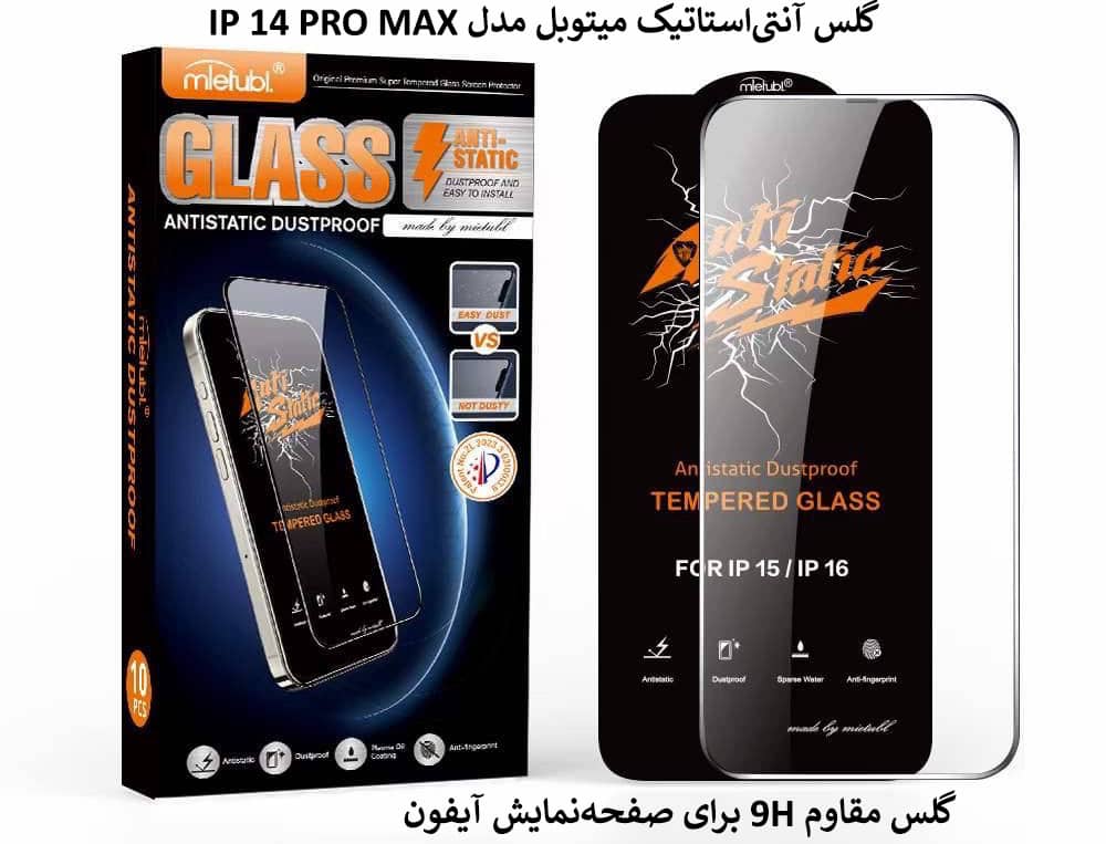 گلس آنتیاستاتیک میتوبل مدل IP 14 PRO MAXگلس مقاوم9H