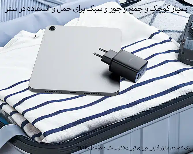 این شارژر با استفاده از مواد مقاوم ضد حریق طراحی شده است و با ابعاد کوچک و وزن سبک خود، برای حمل و استفاده در سفر یا محیطهای کاری مناسب است. -